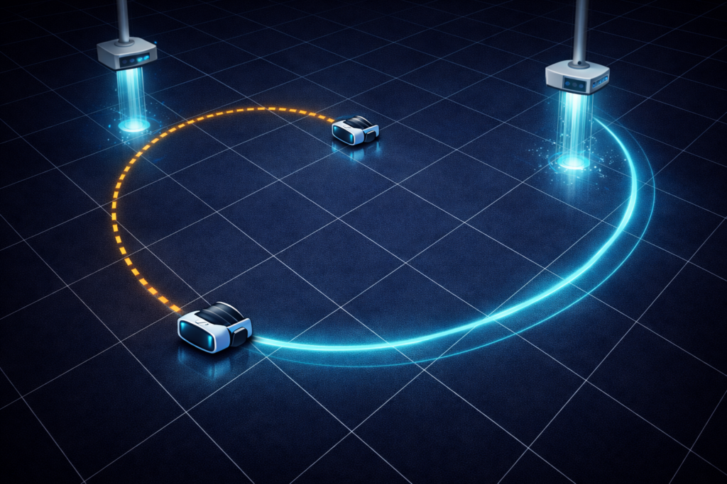 This differs fundamentally from PCVR streaming, where every rendered frame travels over WiFi from a PC to the headset. PCVR is bandwidth-intensive. Standalone free roam is latency-sensitive. The network does not need to move large amounts of data, it needs to move small amounts of data reliably, fast, and without interruption.