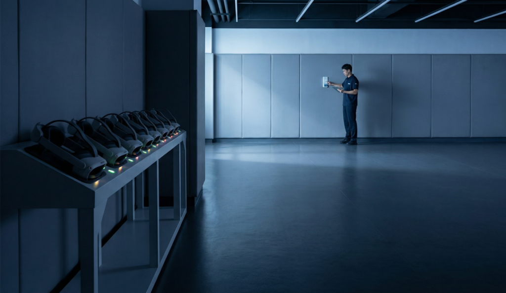 Every manual step in a venue workflow is a variable. Variables produce inconsistency. Inconsistency erodes both throughput and guest experience over time. “One-click launch” means the complexity of coordinating a multi-headset session sits with the system, not distributed across individual staff actions. Whether the implementation is literally one button or a short configured sequence, the logic is the same: the human decision point is the session itself, not the mechanics of starting it.